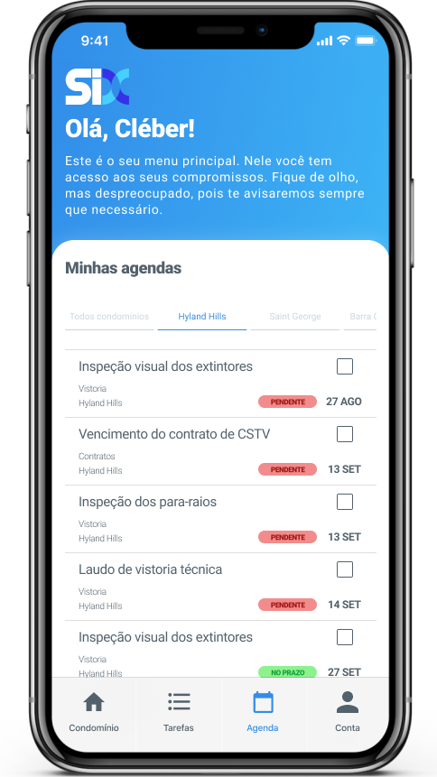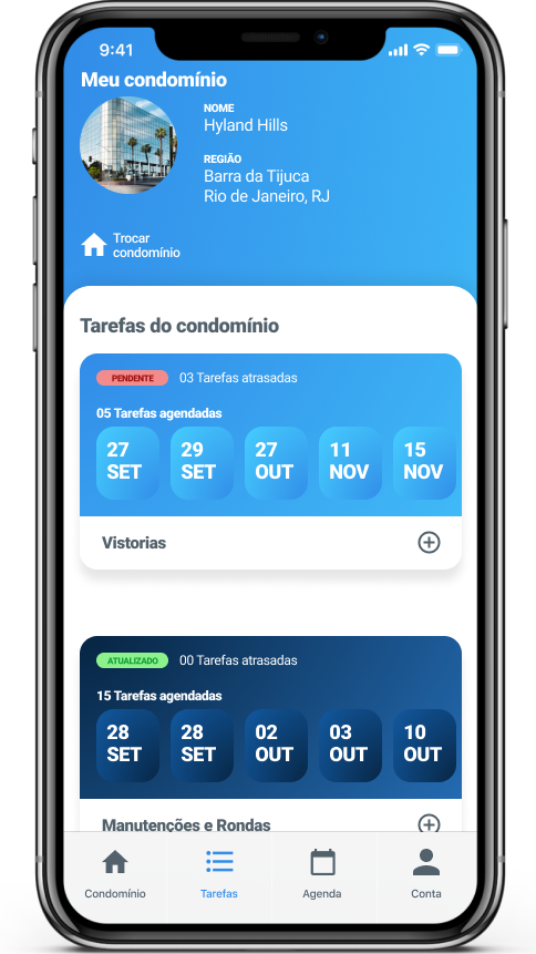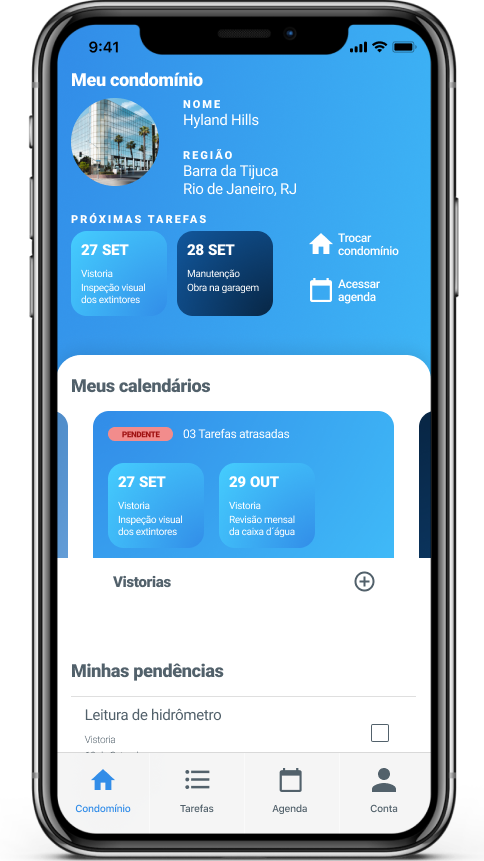 Tenha acesso ao seu condomínio, com o controle de suas tarefas pendentes e alertas instantâneos sobre vencimento de contratos, vistorias, manutenções e muito mais.